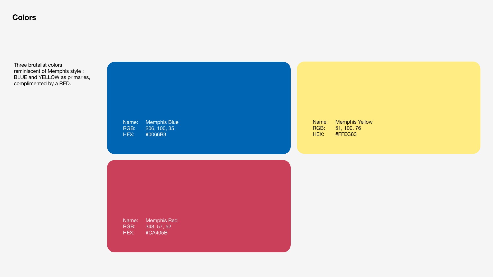 Colors were narrowed to an impactful yellow and blue, complimented with a red.