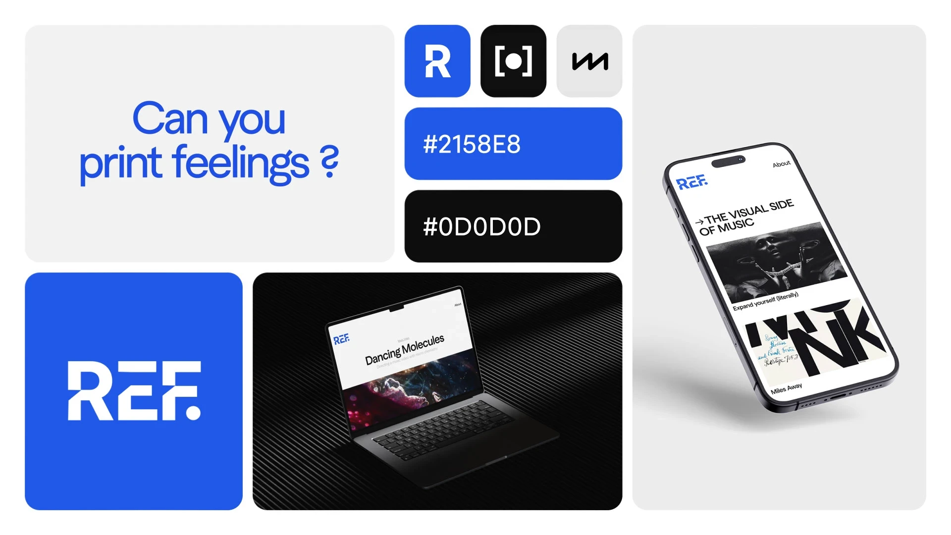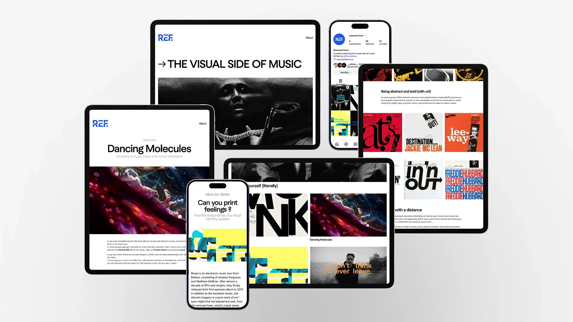 Also, I enjoy the idea that they evoque the word "Reference" which seem appropriated with the subject, as a curated niche list of symbiotic music tracks and visuals designs, and actually referencing each other.
